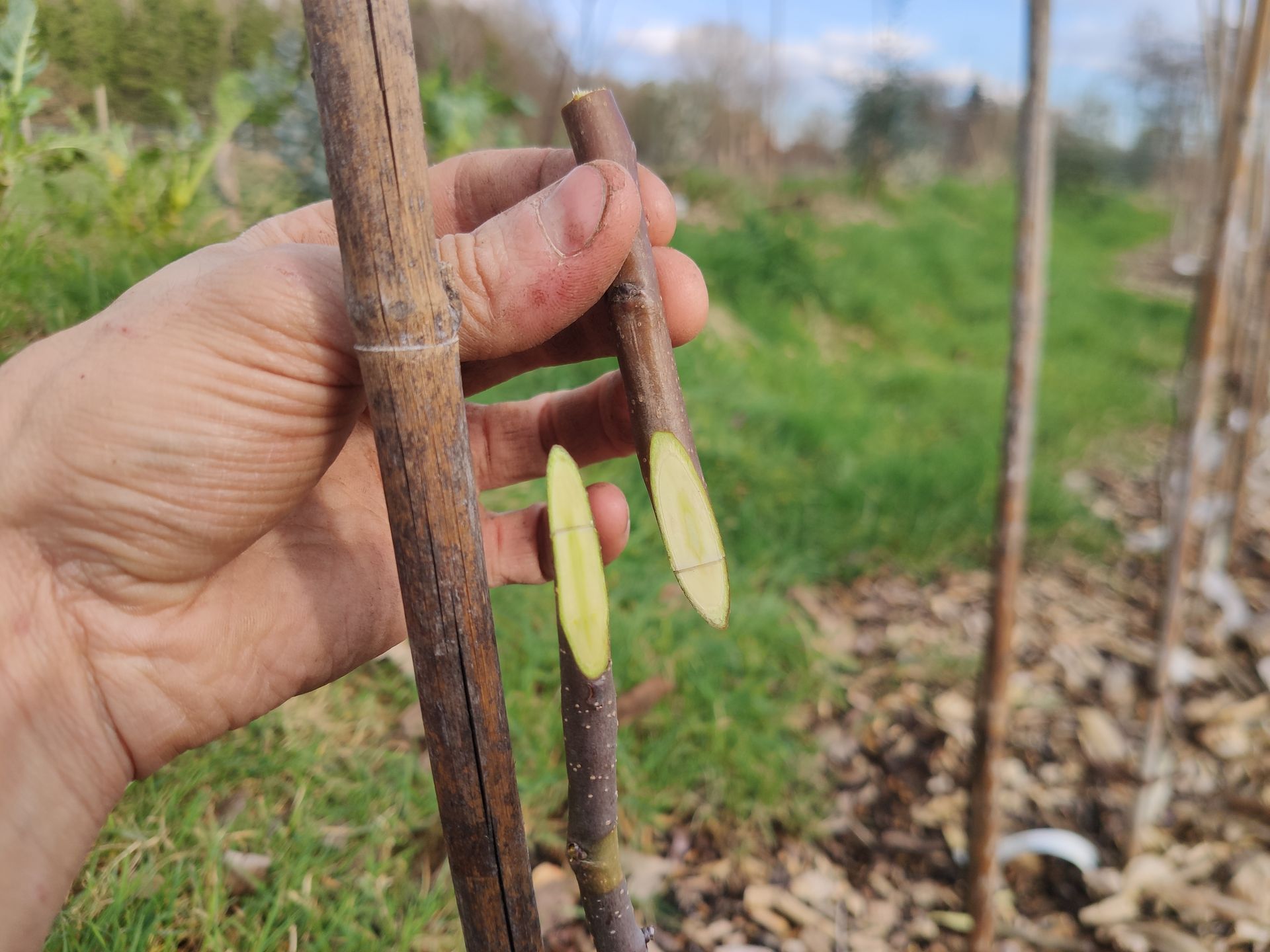- Vaststaande onderstammen: In het voorjaar (maart-april), bij goed weer, kan deze techniek ook buiten worden toegepast op vaststaande onderstammen of jonge fruitbomen.