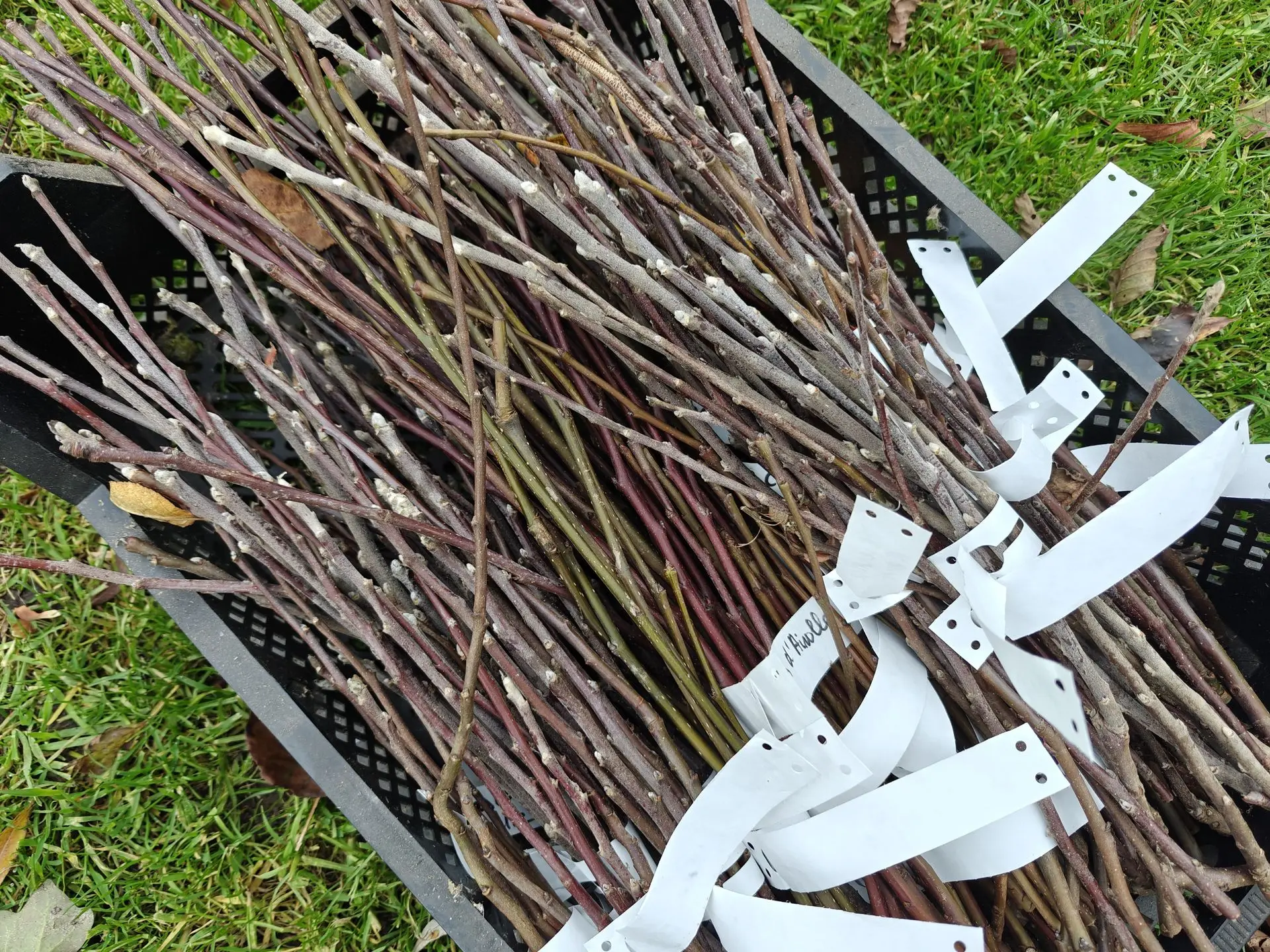 Bundel ze per ras en label meteen. Schilderstape met watervaste stift of een ander duidelijk systeem voorkomt later veel verwarring.